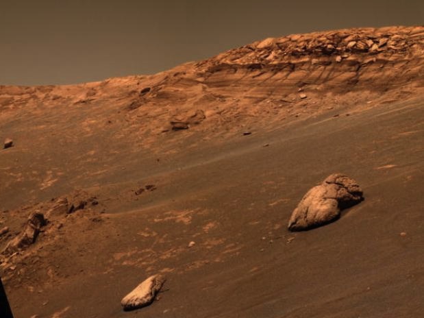 Las imágenes facilitadas en el último año por el robot Curiosity (1.300 100万画素, con tres cámaras diferentes), de las que se han utilizado y combinado en un complejo mosaico unas novecientas fotografías, permiten tener una impresionante visión de este planeta desértico hasta el último detalle y dar la sensación de estar caminando por Marte.