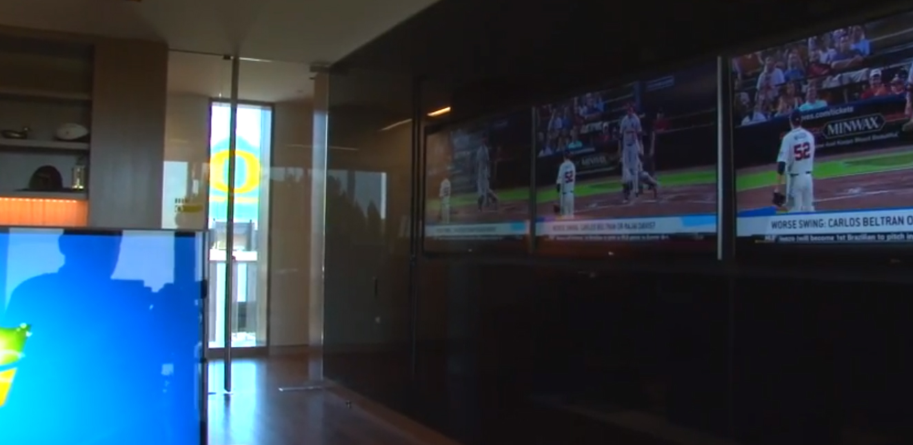 大きなビデオ ウォールがオレゴン ダックスの新しい建物への訪問者を歓迎します