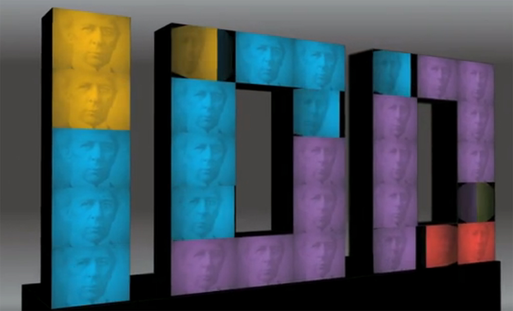 Una pantalla personalizada, で構成されています 29 Christie MicroTiles dispuestos para formar el número 100, ofrece una retrospectiva de los cien alumnos celebres que han estudiado en la Universidad Wilfrid Laurier.