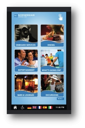 Cada barco de esta línea de cruceros tendrá entre treinta y cincuenta pantallas táctiles y estáticas situadas en las zonas comunes y estratégicas del buque. Estos displays se utilizarán a modo de conserjes virtuales para que los huéspedes puedan realizar reservas para excursiones, レストラン, entretenimiento y contar con información de todo tipo.