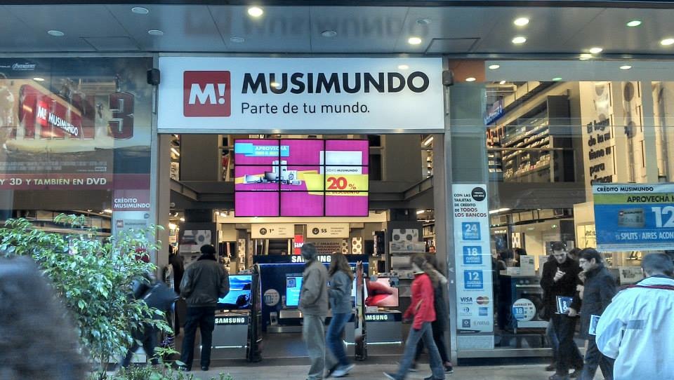 Musimundo はすべての施設にデジタル サイネージ チャネルを備えています, チャンネルMと呼ばれる!, 戦略的な広告やプロモーションが放送される場所, ビデオだけでなく, ブランド認知とダイナミックコンテンツ.