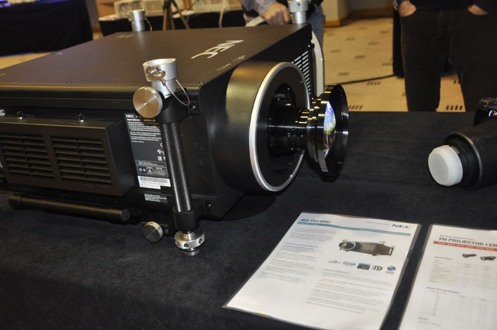 Durante estas dos jornadas se han mostrando equipos de todas las líneas de proyectores que NEC ofrece actualmente, desde la Serie V hasta llegar a los equipos de óptica intercambiable con las diferentes tecnologías que utiliza la compañía: 液晶, DLP y DLP 3chip. También han estado presentes los equipos LED portátiles, los proyectores de corta distancia, los interactivos de distancia ultracorta y los equipos Full HD.