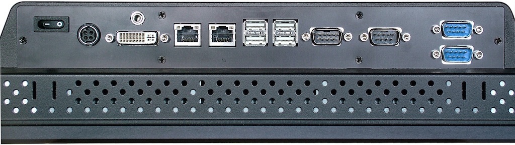 Estos PCs panelables incluyen slot interno mini PCIe, slot externo CFast, Wi-Fiカード (オプション) y disco duro SATA de 2.5” y 320 GB. La conectividad queda garantizada mediante cuatro puertos USB 2.0, cuatro puertos serie RS232, dos entradas LAN (10/100/1000 Mbps), オーディオ出力, マイク入力とDVI-I出力.