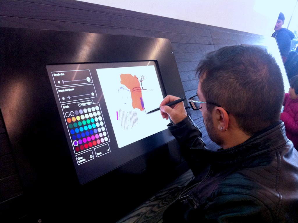 En el Bloomberg Connects Drawing Bar, el visitante puede, gracias a una pantalla táctil con una paleta de pinceles y colores, dibujar una obra y exponerla en una de las paredes del museo. Cinco proyectores de パナソニック plasman la obra sobre el muro, al mismo tiempo que el “artista” puede enviar su trabajo al Flickr de la Tate.