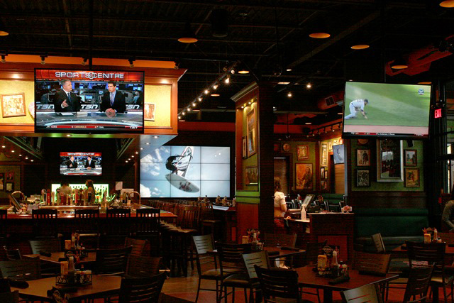 “Nuestro nuevo sistema audiovisual nos permite atender de forma personalizada a cada cliente. Además de las enormes pantallas de proyección y televisores que hay instaladas en el restaurante, tenemos un videowall de nueve pantallas en el bar que puede mostrar uno o seis canales de vídeo diferentes. Ya sea por la National Football League (NFL) o la National Hockey League (NHL), siempre hay varios eventos deportivos que nuestros clientes quieren ver”, explica Murphy.