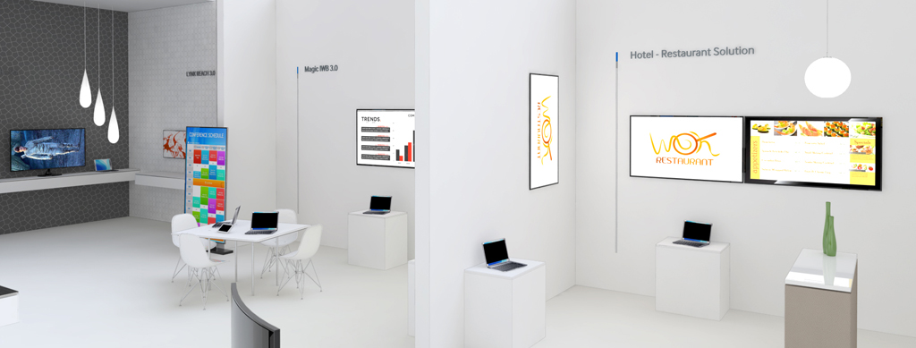 Durante el CES 2014 que se está celebrando en las Vegas, サムスン電子 está dando a conocer su propuesta con tecnología LFD (Large Format Display) ホテル用, empresas y distribuidores. Para mostrar los beneficios de estas soluciones en cada segmento de mercado, la compañía ha diseñado un stand que reproduce varios entornos que simulan un hotel de última generación. En este entorno se ha instalado un videowall para el lobby, una nueva solución de TV, pantallas para centros de negocios con Samsung Interactive White Board y una gran pantalla LED LFD de 95 インチ.