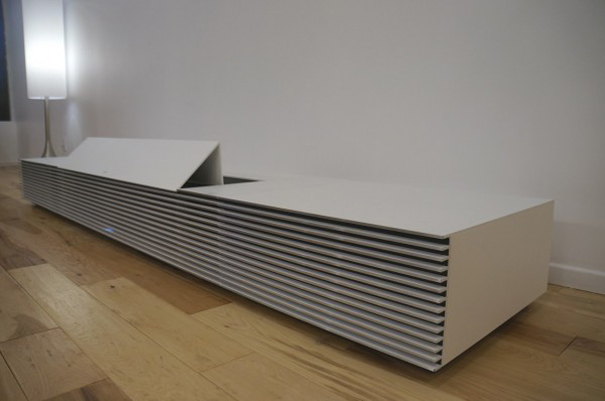 の寸法で 110 centímetros de largo, el Ultra Short Throw Projector de Sony muestra un diseño que parece formar parte del mobiliario y es sencillo de instar, sólo hay que situarlo cerca de la pared. Este proyector es capaz de convertir cualquier superficie en una pantalla 4K proyectando las imágenes a través de una fuente láser de diodo. Según Hirai, el proyector puede ser utilizado para crear una especie de ventana virtual “convirtiendo cualquier pared en una pantalla”.