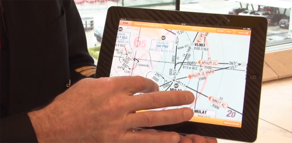 このiPadを使って, イベリア航空のパイロットは、地図作成を参照できるいくつかのアプリケーションにアクセスできます。, 飛行機のマニュアルを読み、離陸段階に必要な計算を行う, 巡航と着陸. また、パイロットの作業負荷が軽減され、より簡単かつ直感的な飛行管理が可能になります。, 意思決定を促進する, その結果、作業の安全性と効率が向上します。.