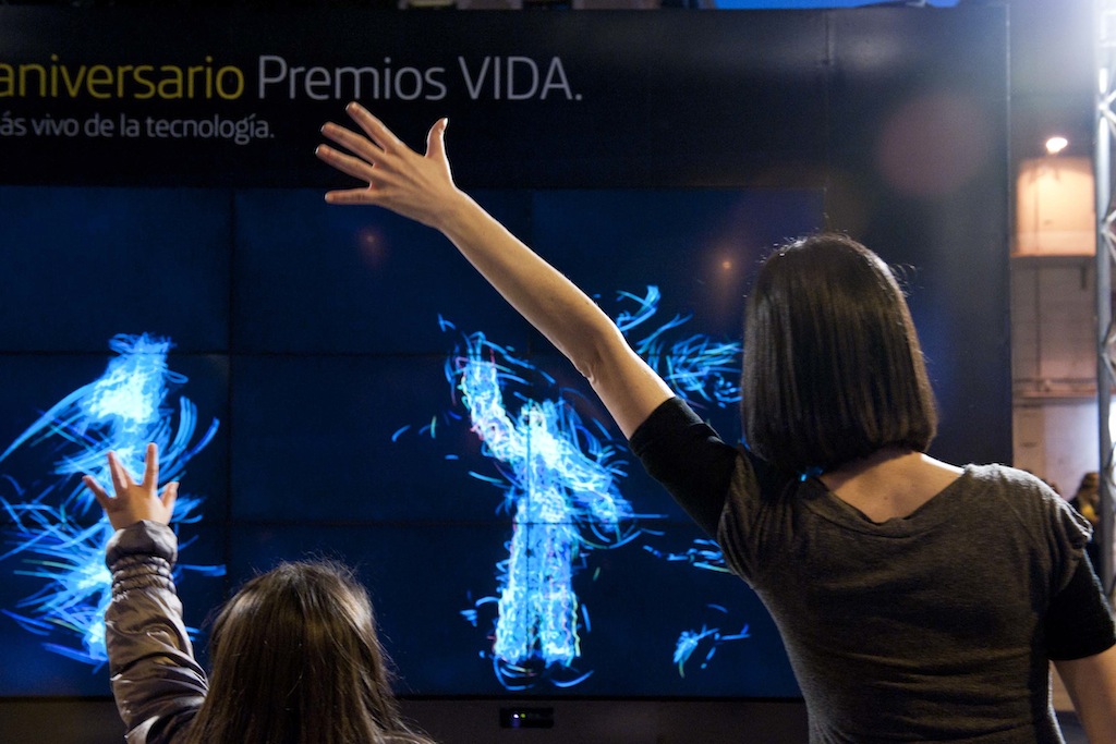 En el marco del 15º aniversario de los Premios VIDA 15.0, que se celebran hasta el próximo 20 de abril en el Espacio Fundación Telefónica, esta organización ha querido mostrar a los ciudadanos madrileños “el lado más vivo de la tecnología” con una instalación interactiva formada por una gran pantalla espejo con sensores, que replica los movimientos corporales de las personas.