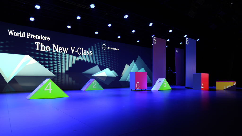 ドイツのアニメーション代理店 m box Bewegtbild は、ミュンヘンで新しいメルセデス ベンツ V クラス ミニバンを発売するためにマルチメディア エクスペリエンスを作成しました。. ライブパフォーマンスと演出を融合させた作品, コンピュータで生成されたアニメーションを使用した. BlackTraxはその実現のための技術を提供しました.