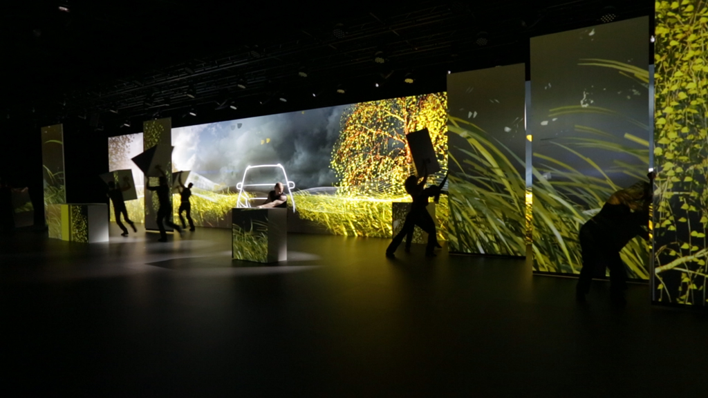 m box チームはショーの振付師と緊密に協力しました, アレックス・ブルゴス, ビデオコンテンツを確実に, 照明効果とオーディオサウンドトラックは完璧にプログラムされ、ダンサーや動く物体の動きと相乗効果を発揮しました。, 新しいメルセデス・ベンツ車の機能を中心とした生産メッセージを伝えながら.