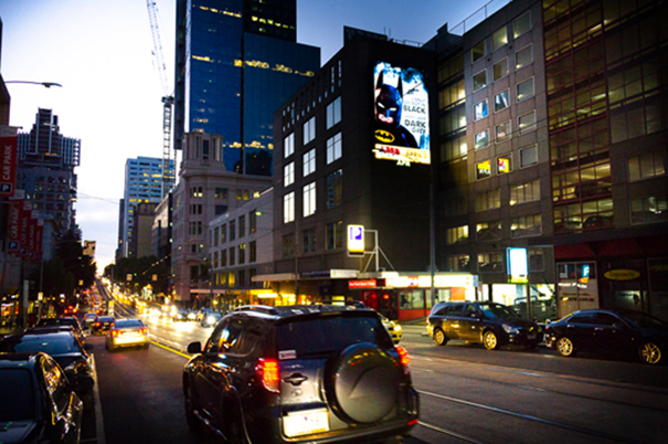 La campaña de la película se está ejecutando a través de las dos pantallas de gran formato que APN Outdoor tiene en el distrito central de negocios de Melbourne, así como en los soportes de gran formato de cartelería digital localizados en Sydney y Brisbane. Los contenidos que se muestran en estas pantallas varía dependiendo de la zona en la que se va a visualizar, siendo personalizados para el público al que se dirige. このようにして, se consigue alcanzar un mayor impacto.