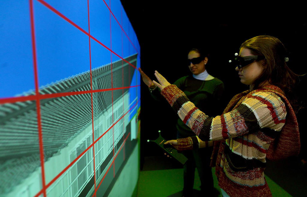 El Smart House Living Lab del Campus de Excelencia Internacional de Moncloa (CEI Moncloa), situado en las inmediaciones de la Escuela Técnica Superior de Ingenieros de Telecomunicación (ETSIT) de la Universidad Politécnica de Madrid (UPM), dispone de una sala multimodal avanzada de realidad virtual que está adaptada para personas en silla de ruedas. Se trata de una cueva de dos caras (pared y suelo) equipada con dos proyectores estereoscópicos クリスティ Mirage DS+6K-M que se utiliza para probar y desarrollar nuevas aplicaciones de Inteligencia Ambiental.