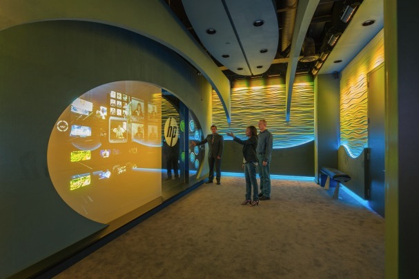 La instalación interactiva y en 3D realizada por AMS Pictures en el espacio de innovación de HP Enterprise Services Experience Center, permite a la compañía mostrar a clientes y visitantes su visión tecnológica y convergencia de sistemas.