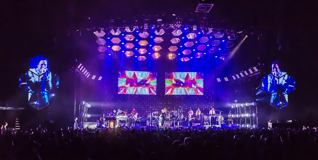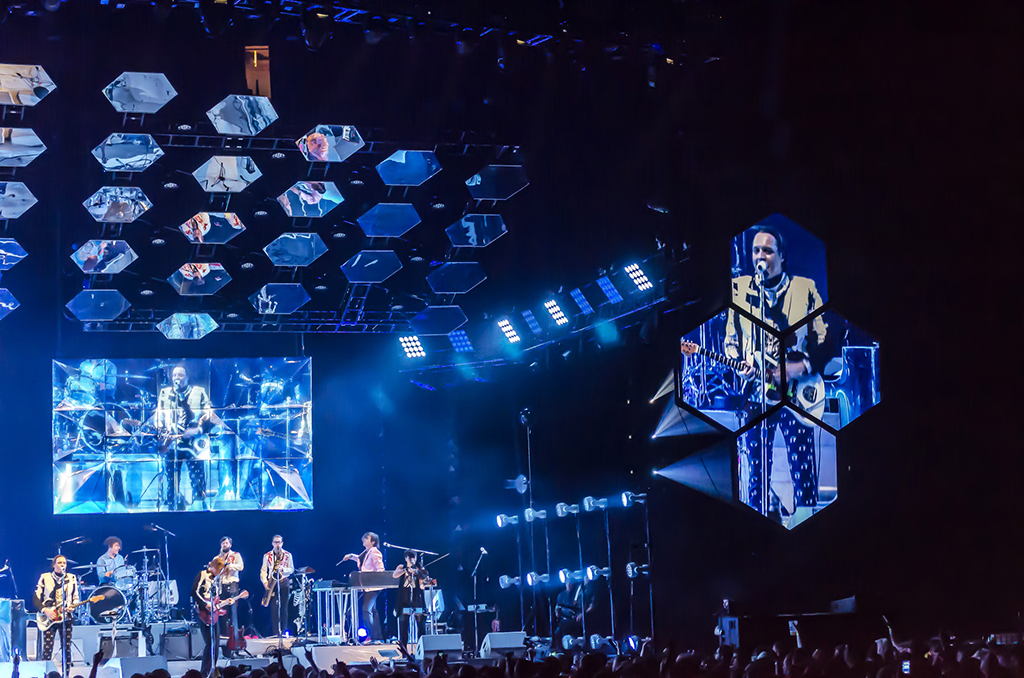 XL ビデオのビジュアル メディアがロック グループ アーケイド ファイアの Reflekts ツアーに同行