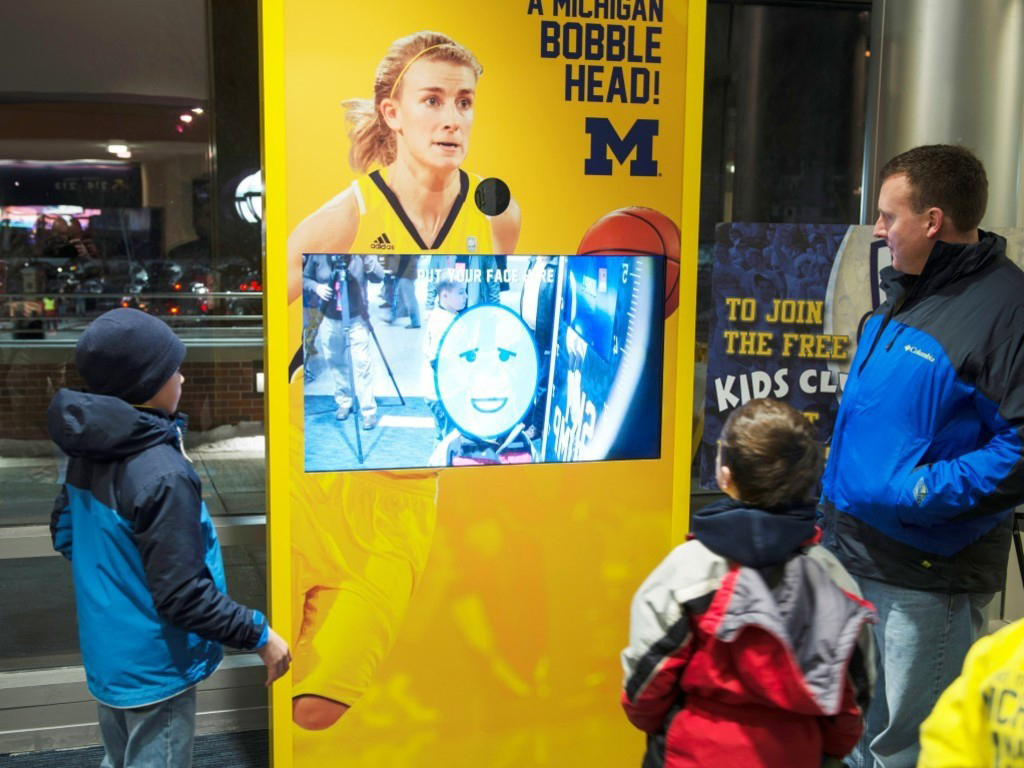 En el campo de juego se han instalado 17 pantallas de la línea Planar PS-Serie (PS4652) の 46 pulgadas que son utilizadas por los aficionados para explorar los deportes que se practican en Michigan a través de fotos, ビデオとテキスト. Es posible ver las estadísticas de un partido reciente, aprender acerca de los próximos juegos, comprar entradas… Con estos displays también se crean zonas interactivas (Kids Zone Interactives) para que los más jóvenes puedan jugar, personalizar sus fotos o comparar su capacidad de salto con la de un jugador de Michigan.