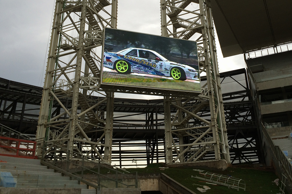 Mediante la función AV-in de estos equipos, los partidos se están transmitiendo en vivo a través de los displays de forma que los aficionados pueden seguir el juego desde cualquier rincón del estadio.