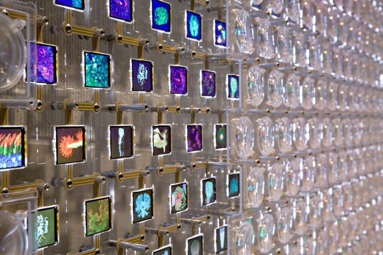 El centro de investigación de biomedicina, Weill Cornell Medical College (WCMC), ha instalado en el vestíbulo de sus nuevas oficinas de Manhattan una obra de arte digital, el Discovery Wall.