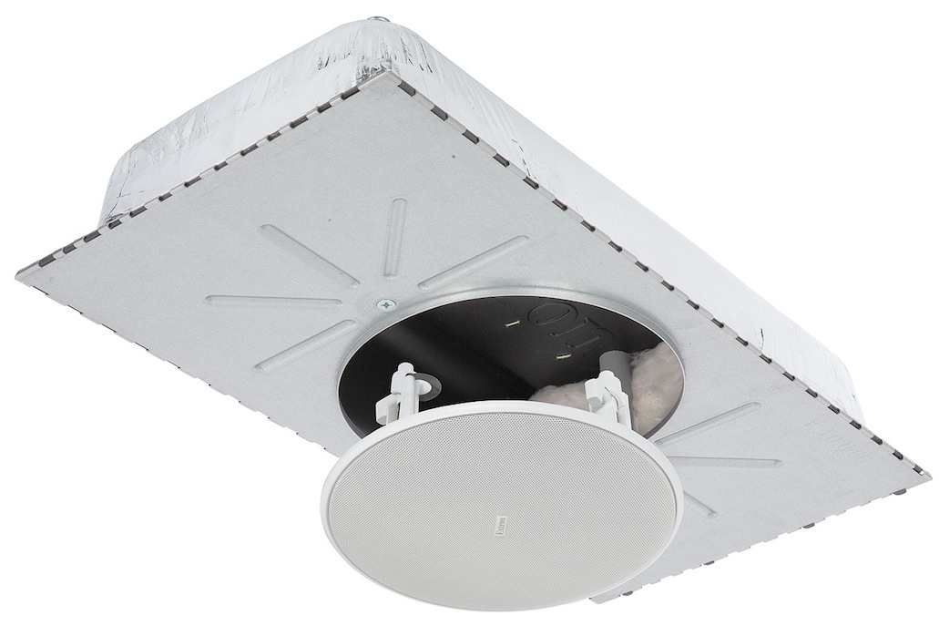 Este diseño de altavoz único simplifica enormemente la instalación de altavoces de techo ahorrando tiempo y costes en su instalación.