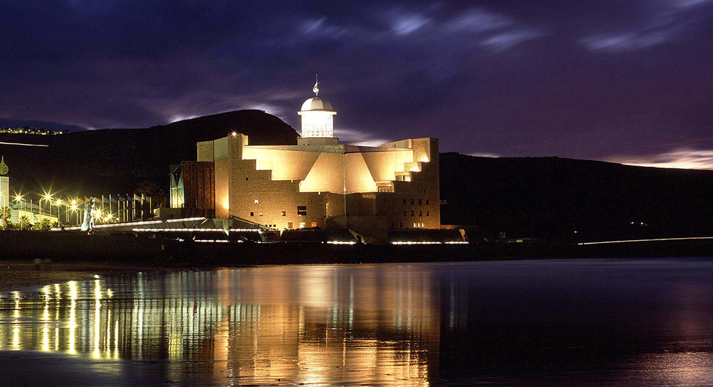 グラナダのヘニル川にかかる石橋8日間, セビリアのレアレス・アルカザレスの壁, ビルバオのアリアガ劇場とラス パルマス デ グラン カナリアのアルフレッド クラウス オーディトリアムでは、革新的な光と音のショーが毎日開催されています。. それぞれの建物の特徴に合わせたデザインで, これらは高輝度、低消費電力の LED プロジェクターによって照明されています。, ファサードをコーポレートブルーで彩る.