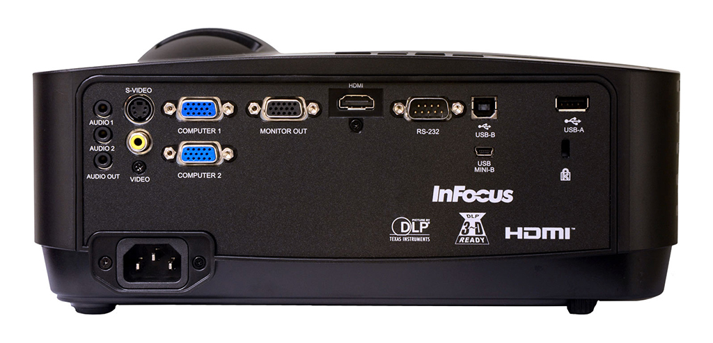 El proyector DLP IN124a ofrece múltiples opciones de conectividad, incluyendo HDMI y VGA dual. También cuenta con un puerto USB y 2 GB de memoria interna que se puede utilizar para la presentación, sin precisar un ordenador, de documentos y archivos multimedia.