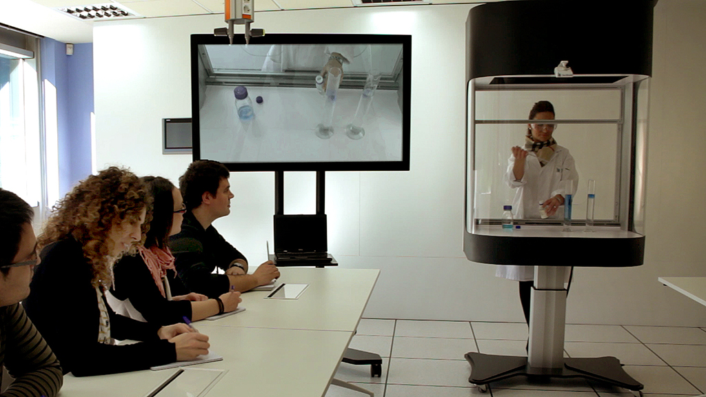 La universidad del futuro acoge asimismo laboratorios que se convierten en espacios mixtos donde se imparten clases magistrales, se desarrollan experimentos y se favorece el trabajo en equipo. La vitrina de gases móvil permite el desarrollo de experimentos en cualquier punto del aula y además, mejoran la visibilidad mediante el uso de cámaras que proyectan en pantallas el experimento que se está realizando.
