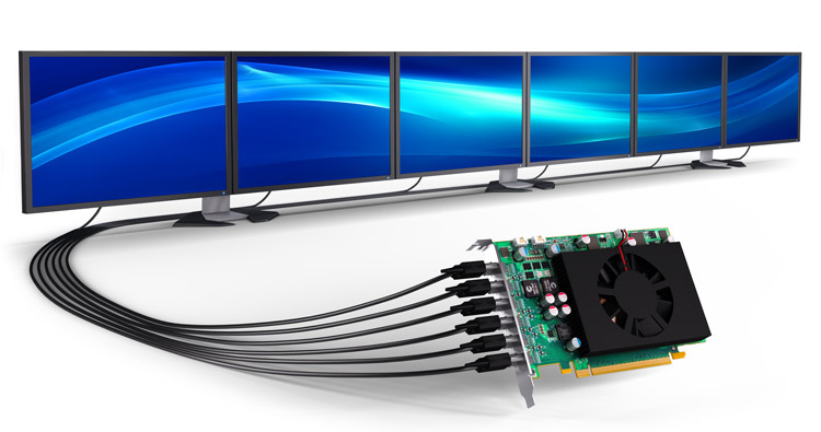 La tarjeta de vídeo Matrox C680 admite la conexión de 6 Ultra HD スクリーンまたはプロジェクター