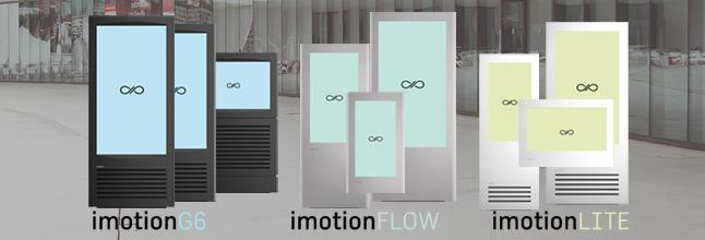 Las pantallas ImotionFLOW disponen de sistema de ventilación de enfriado y están disponible en tres opciones: en formato vertical de un solo lado, en modo retrato para montar en pared y tipo paisaje. Todos ellos con un tamaño del bisel de 100 mmy 16 mm de cristal para mostrar la distancia. Mientras que las ImotionG6 están pensadas para interior, las ImotionFlow han sido diseñadas paran utilizar en exterior, en lugares donde estén expuestas directas a la luz solar, soportando temperatura de s entre -25 y 40⁰C.