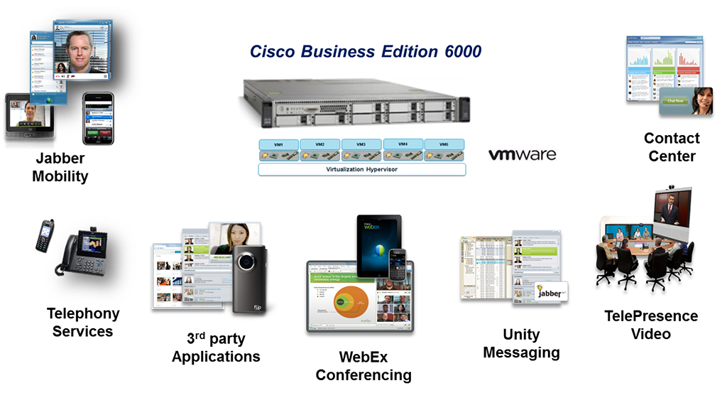Especialmente diseñada para las pymes, Business Edition 6000S (BE6000S) es una plataforma de colaboración ‘todo en uno’ construida sobre un router integrado de Cisco. Sencilla de implementar y altamente escalable, proporciona funcionalidades de clase empresarial de voz, ビデオ, mensajería instantánea y presencia para empresas de entre 25 y 150 ユーザー.