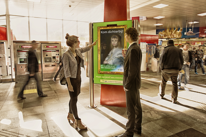 KPN, principal patrocinador del Rijksmuseum, quería llevar las obras pictóricas del museo a la calle, acercarlas al publico. Y, con este reto en mente, se colocaron 84 pantallas digitales en las 16 estaciones de metro de Ámsterdam y Rotterdam. Los transeúntes veían como las obras cobraban vida e, 平, podían ‘meterse’ dentro del cuadro y formar parte de él. Podían hacerse un selfie con la videocámara que integraba la pantalla y luego compartir la imagen en las redes sociales.