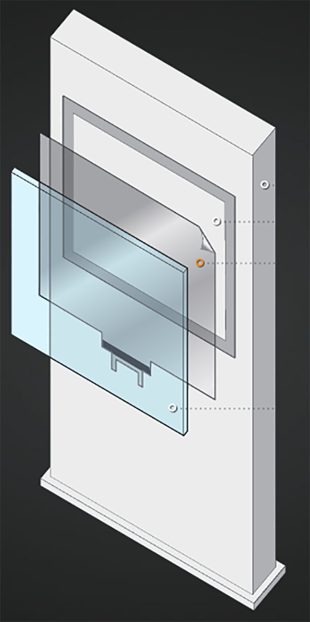 La máquina VE Connect está diseñada con una pantalla táctil que ha sido recubierta por la solución de Visualplanet. Touchfoil es una lámina táctil transparente de micrones que es fácil de instalar que es fácil de instalar y puede ser aplicada directamente a una ventana o pantalla con objeto de crear una experiencia totalmente interactiva, y en el caso de la máquina que se expone en ISE se quiere crear una experiencia de compra dinámica y personalizada. その上, los sensores se encuentran instalados en la parte posterior del cristal, pero se encuentran protegidos para soportar espacios de gran audiencia como es una feria.