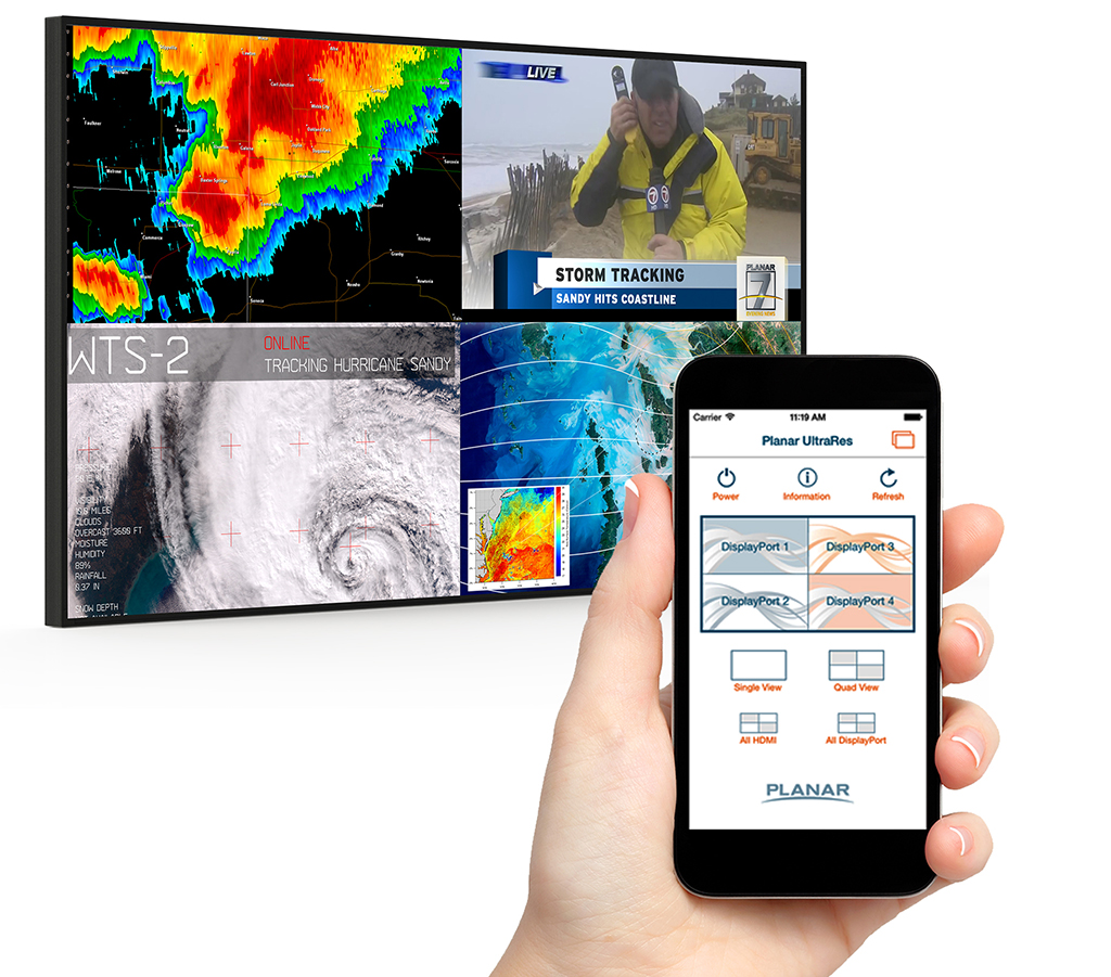 Desde la nueva aplicación iOS de Planar es posible cambiar las fuentes y diseños de las pantallas UltraRes, gestionando los contenidos de vídeo y presentaciones.