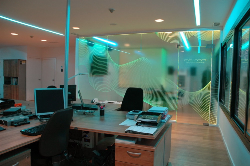 同社の発表によると, 最新テクノロジーで本社を変革します, オープンなオフィスエリアになります, 電子ダウンライトで照らす: LED Pandora-4000°K-2000lm およびフレキシブル LED ストリップ.