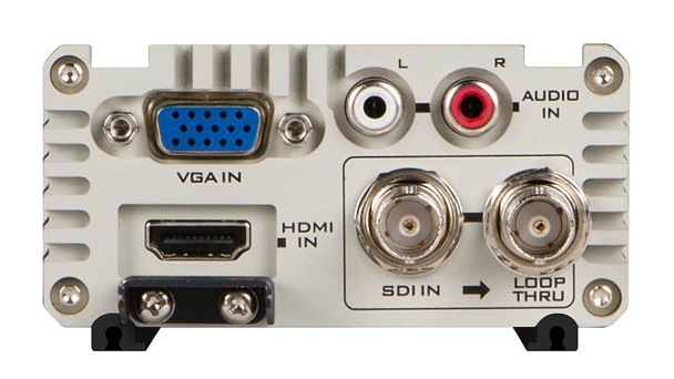 También soporta audio multicanal, SDI embebido de ocho canales y 48 kHz PCM y HDMI con audio embebido para hasta ocho canales y 96 kHz PCM, e incorpora entrada de audio estéreo 2-CH y 48 kHz PCM e interfaz USB para la actualización del firmware.