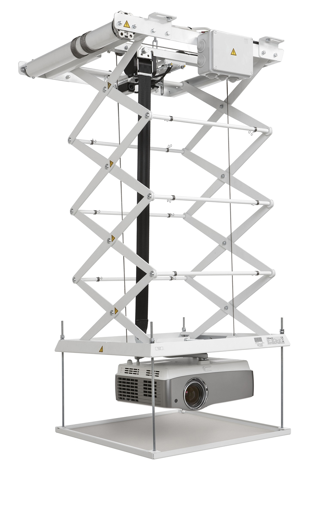 La posibilidad de ajustar la posición para tener recogido el proyector tiene la ventaja de que el kit de falso techo se puede alinear perfectamente. Y en algunos casos, ni siquiera es necesario crear una estructura para rellenar el hueco interno entre el techo estructural y el falso techo. El movimiento de los sistemas de elevación PPL se consigue con un motor muy preciso y fiable, que mueve el dispositivo con una precisión inferior al milímetro.