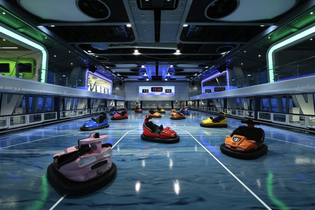 その上, los pasajeros cuentan con un simulador de paracaidismo, así como una impactante atracción, denominada North Star, que eleva a los pasajeros en una cabina a más de un centenar de metros sobre el oceáno; autos de choque con iluminación espectacular e incluso robots que sirven bebidas a los pasajeros.