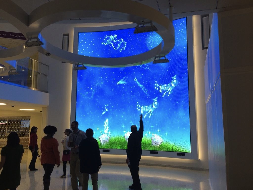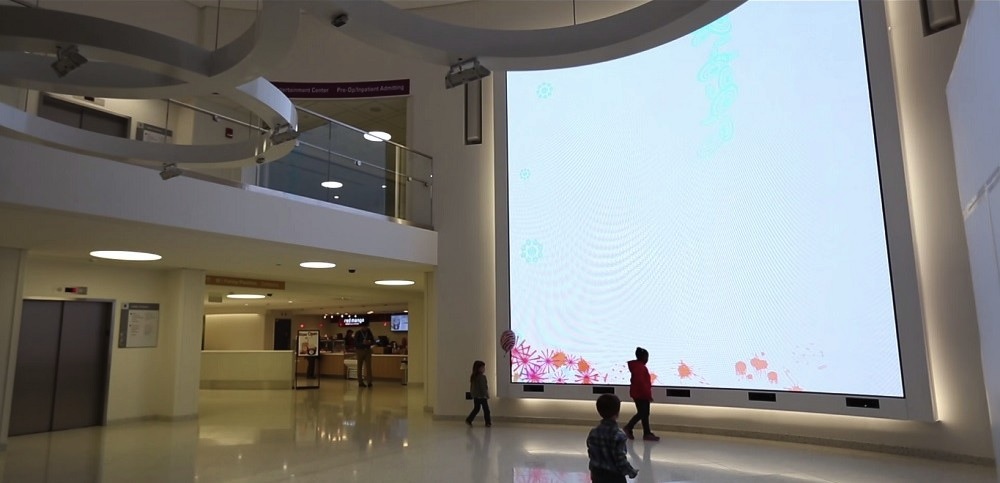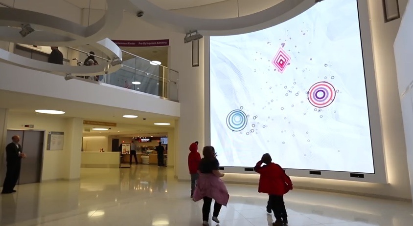 Uno de ellos ha sido la colaboración realizada entre expertos en diseño digital, sistemas AV, medicina y psicología infantil para mejorar el entorno de los niños y familiares en el hospital infantil de Boston (欧州連合) con el desarrollo de una pantalla gigante interactiva ubicada en el vestíbulo de entrada del centro pediátrico.