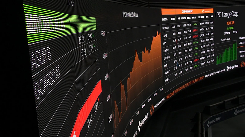 による診断の後、 ウェーブテック, 通信社と一緒に トムソン・ロイター BMVグループに財務情報を提供する企業, リアルタイムで情報を配信するチャネルを刷新する必要があることが判明, BVM の外側に取り付けられている LED スクリーンとティッカー スクリーンを交換します。. このようにして, 財務情報のダイナミクスと表示方法を最適化するソリューションの実装が提案されました。, 投資家の意思決定の基本要素, 株主とブローカー.