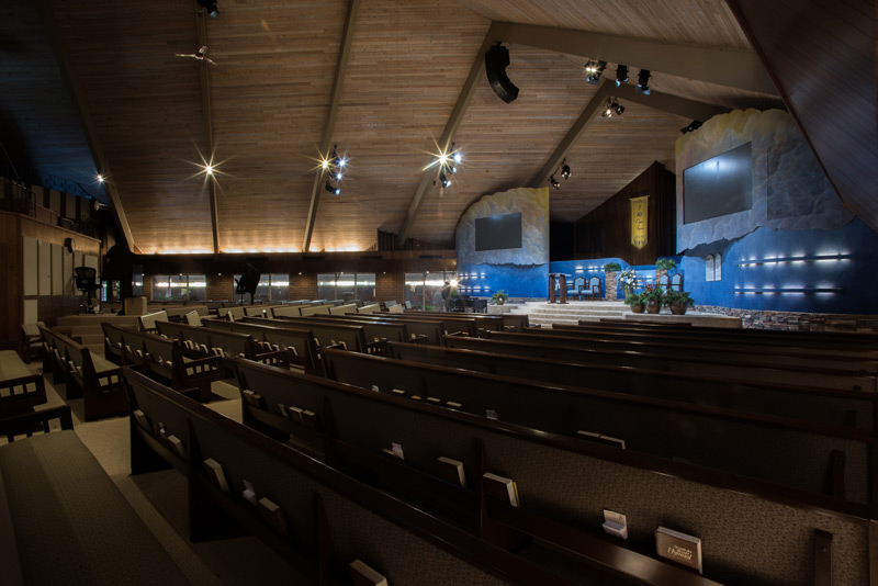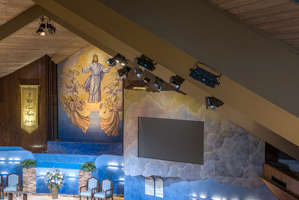 サクラメントのセブンスデー・アドベンチスト教会の信徒が団結 1.400 人々はその年から毎週土曜日にお祝いを生中継しています 1977. 最初はラジオで放送されていましたが、その後、, 何年も前から 80, テレビや, 今, オンラインでもフォローできます, ケーブルおよび衛星テレビ. このため、この会衆の責任者にとって室内照明の品質が非常に重要です。.
