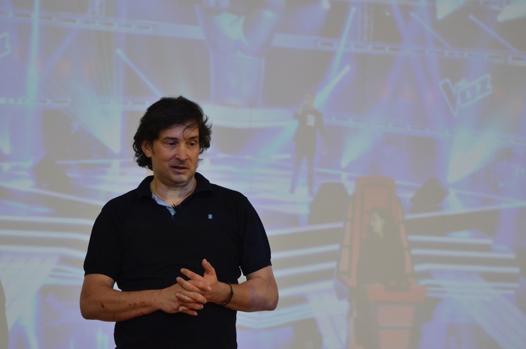 Iñaki Irastorza realizó un recorrido por los diferentes platós que tiene la fase final de este programa, mientras explicaba la distribución del sistema lumínico, la disposición de cámaras, pantallas de vídeo y de los decorados, además de atender a todas las cuestiones y dudas referentes a los métodos de trabajo, utilización de recursos y otros secretos profesionales que realizaron los asistentes.