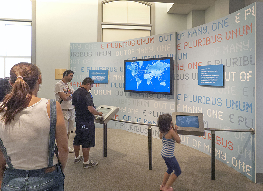 Tanto la sección pre-Ellis Island (Journeys: The Peopling of America – 1550 ある 1890), que se inauguró en 2011, como la nueva galería post-Ellis Island (The Journey: New Eras of Immigration – 1954 hasta la época actual) han sido diseñados por ESI para dar a los visitantes una idea de la experiencia de los inmigrantes en cada período de tiempo.
