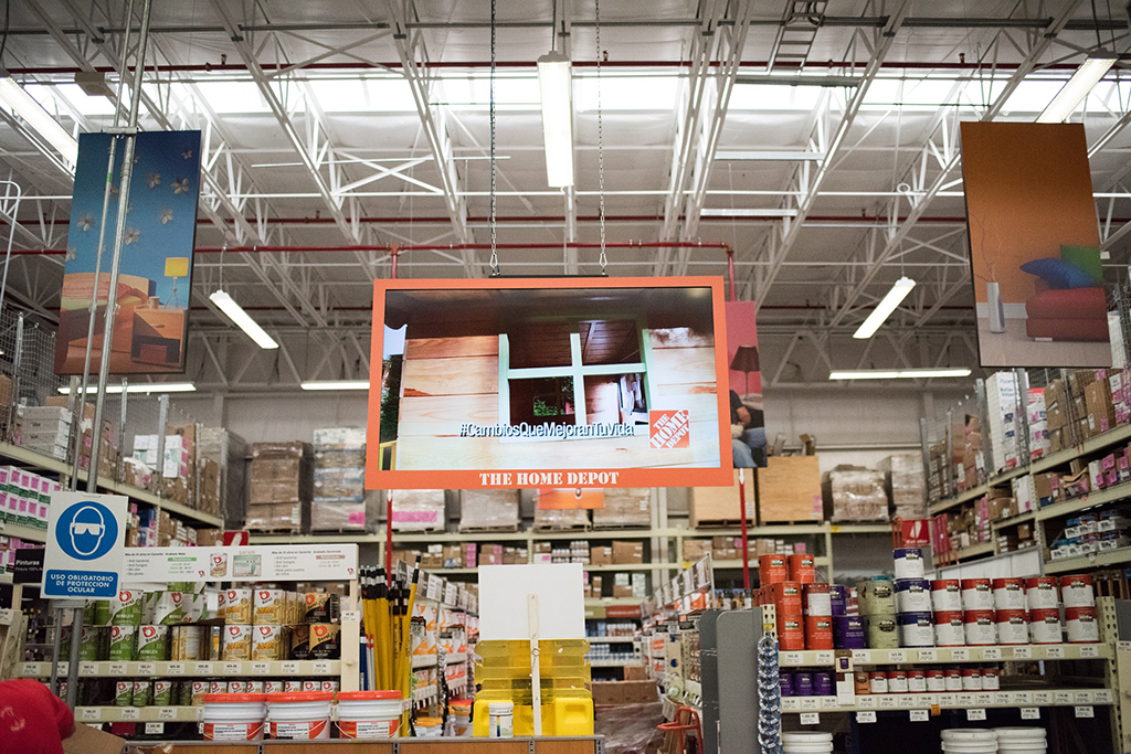 Además de ser un medio para fomentar la imagen de marca y animar a los clientes a que realicen labores de bricolaje en el hogar, esta red de digital signage también es utilizada para la promoción de productos, sobre todo la mercancía de temporada, a la venta en las 115 tiendas que tiene repartidas por toda América.