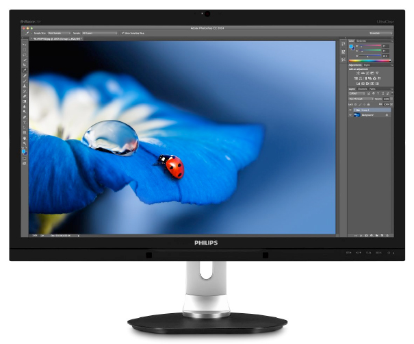 Además esta pantalla dispone de la tecnología PerfectKolor, que garantiza un espacio de color Adobe RGB 99% calibrado en fábrica y 1.000 何百万もの色. Junto a un color y una alta resolución, la pantalla ha sido diseñada para encajar con el modo de trabajar de las personas, con cámara web, MultiView para dividir el espacio de la pantalla en múltiples secciones, altavoces para un sonido de calidad y tecnología antirreflectante y Flicker-free para reducir la fatiga visual.