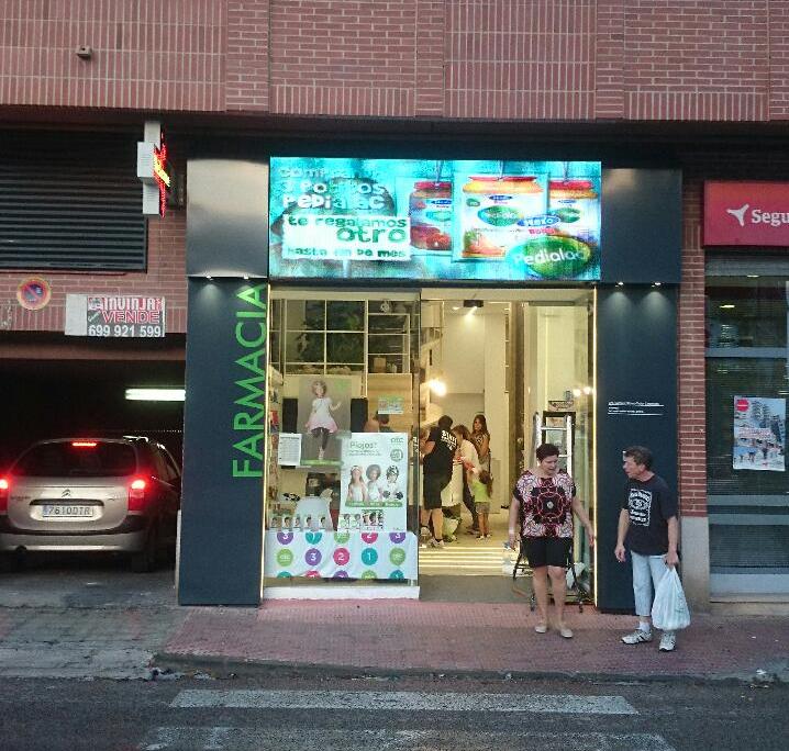 この意味で, la digitalización de esta farmacia hasta ahora tradicional se basa en la instalación de dos pantallas Led de gran formato en sus dos fachadas, en las que se ofrece información relacionada con las salud, de establecimientos de guardia así como promociones de productos a las personas que transitan por la calle.