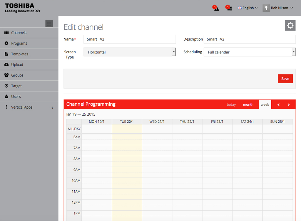Esta solución de cartelería digital de Toshiba dispone de un interface muy fácil de usar, sencillo e intuitivo, que permite crear calendarios para contenidos, crear reglas de sincronización o modificar contenidos de manera inmediata. それと一緒に, los negocios pueden lanzar los mensajes más adecuados en el mejor momento y conseguir el impacto que se desea sobre los clientes.