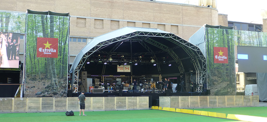 En la edición de este año, celebrada a mediados de junio en Barcelona, se utilizó como escenario principal para las actuaciones de Sónar de Día, Sónar Village. Un recinto que queda dentro de lo que parece una fortaleza, rodeado por altos muros, que ha planteado un gran reto a la empresa encargada de instalar la infraestructura de audio, Tour Serveis. “Pero de todo esto surgió nos permitió comprobar el gran potencial de la nueva herramienta ArrayProcessing de d&b オーディオテクニック que queríamos utilizar aquí”, explica Josan Bravo, técnico del sistema.