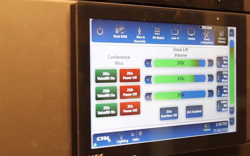 Todo el sistema instalado se ejecuta como una sola red, de manera que todas las fuentes pueden interactuar entre sí dentro del código de control y gestión de AMX, de manera que la organización puede ofrecer todos los recursos necesarios a los usuarios para realizar sus presentaciones, a medios de comunicación y radiodifusión, 講師, 等. de manera integrada.