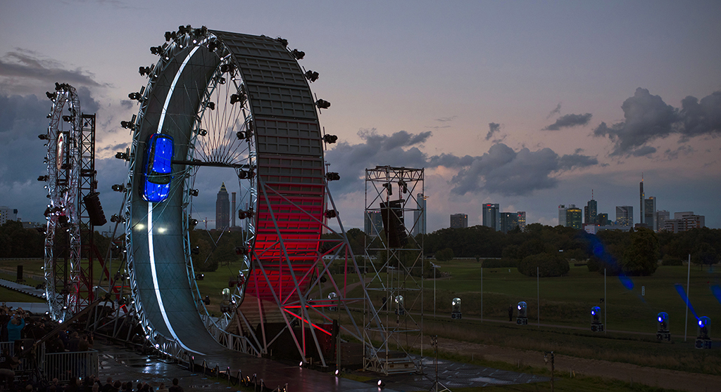 Jaguar ha desafiado la ley de la gravedad con su nuevo deportivo F-Pace batiendo un récord Guinness en un loop de 360 grados en un rampa de casi 20 高さメートル. La cabeza móvil Led G-Spot de GSM fue seleccionada como una de las luminarias para realzar el vídeo de esta hazaña automovilística.