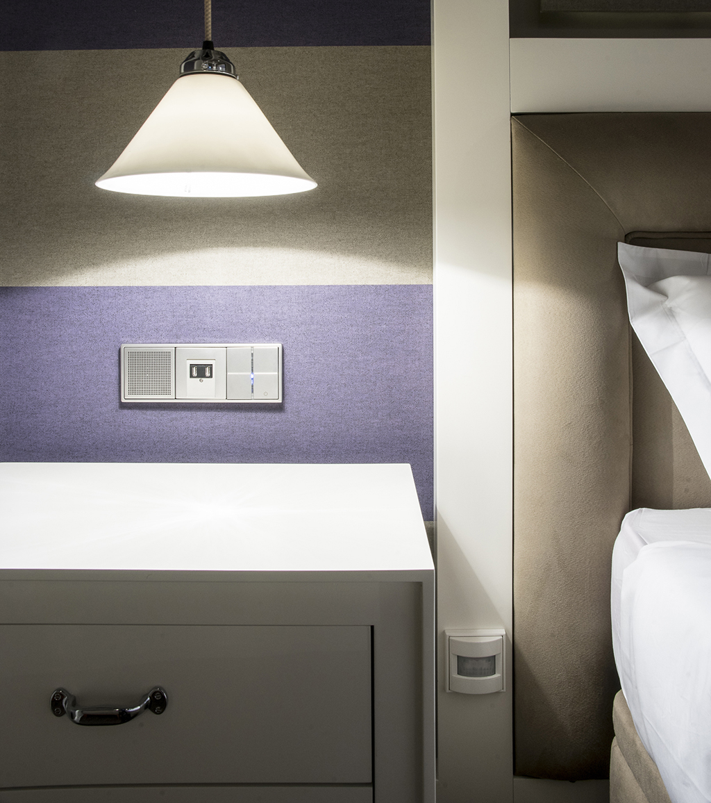 そしてスースタンド, Jung realizó demostraciones de las capacidades de las últimas incorporaciones a su catálogo para hoteles, como el comunicador de audio Bluetooth, los Led de baliza para iluminación nocturna, diferentes tomas multimedia (HDMI, USB, VGA, 等) y los cargadores USB. La colaboración de Jung en InteriHotel supone la confirmación de su apuesta estratégica por el sector hotelero.