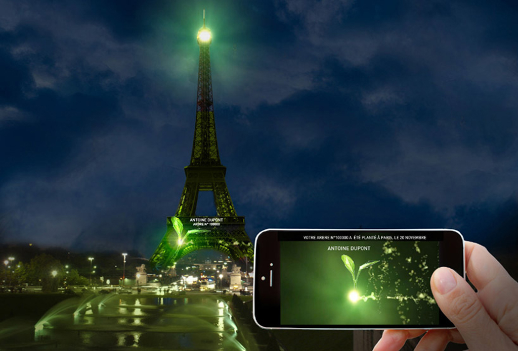Con motivo de la COP21, の 28 11月から 3 de diciembre la Torre Eiffel pondrá en marcha la iniciativa ‘One Heart one Tree’. Todo aquel que acuda a la ciudad parisina podrá plantar un árbol virtual, desde su smartphone, y ver como esta acción se convierte en parte de un proyecto de reforestación real.